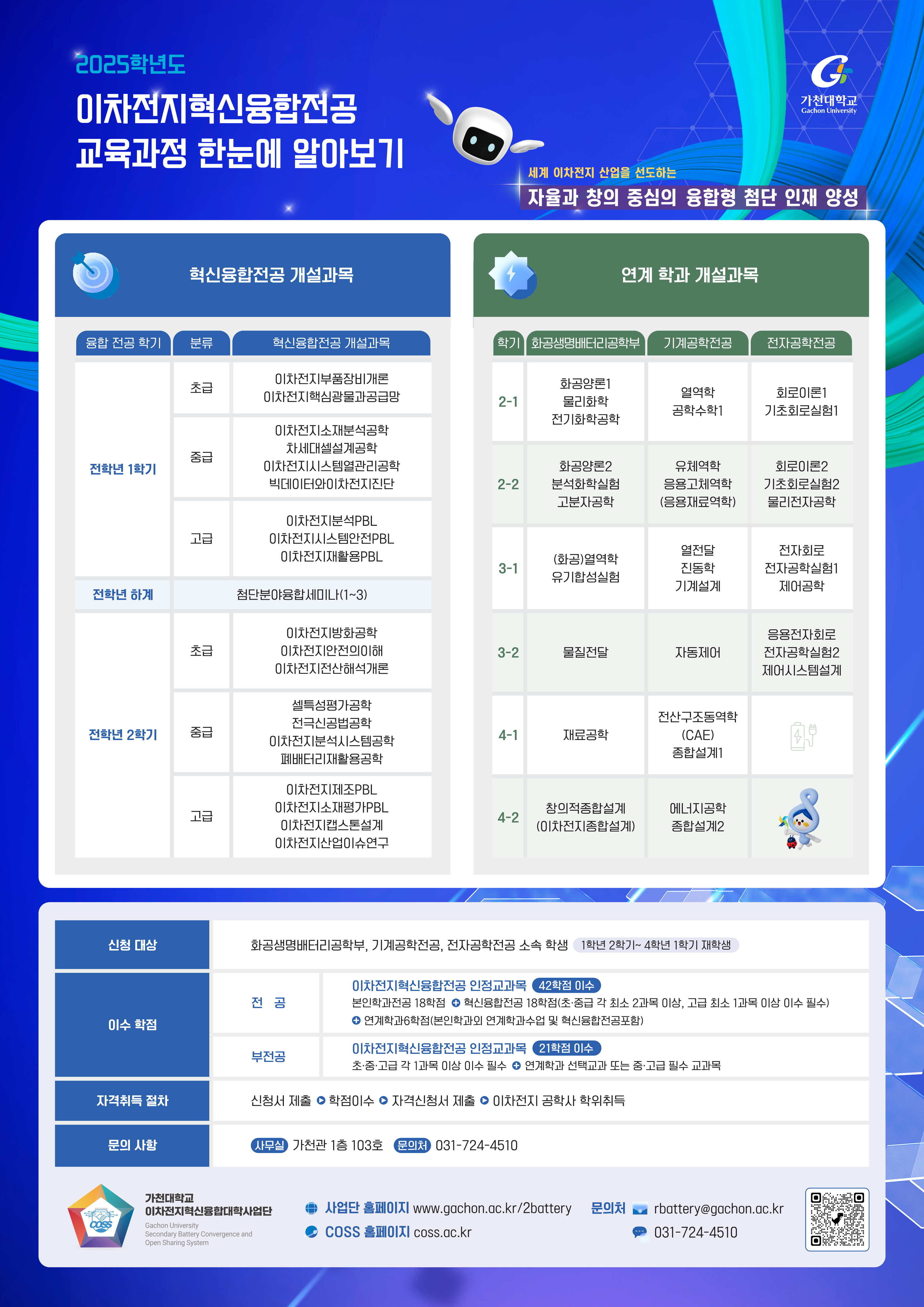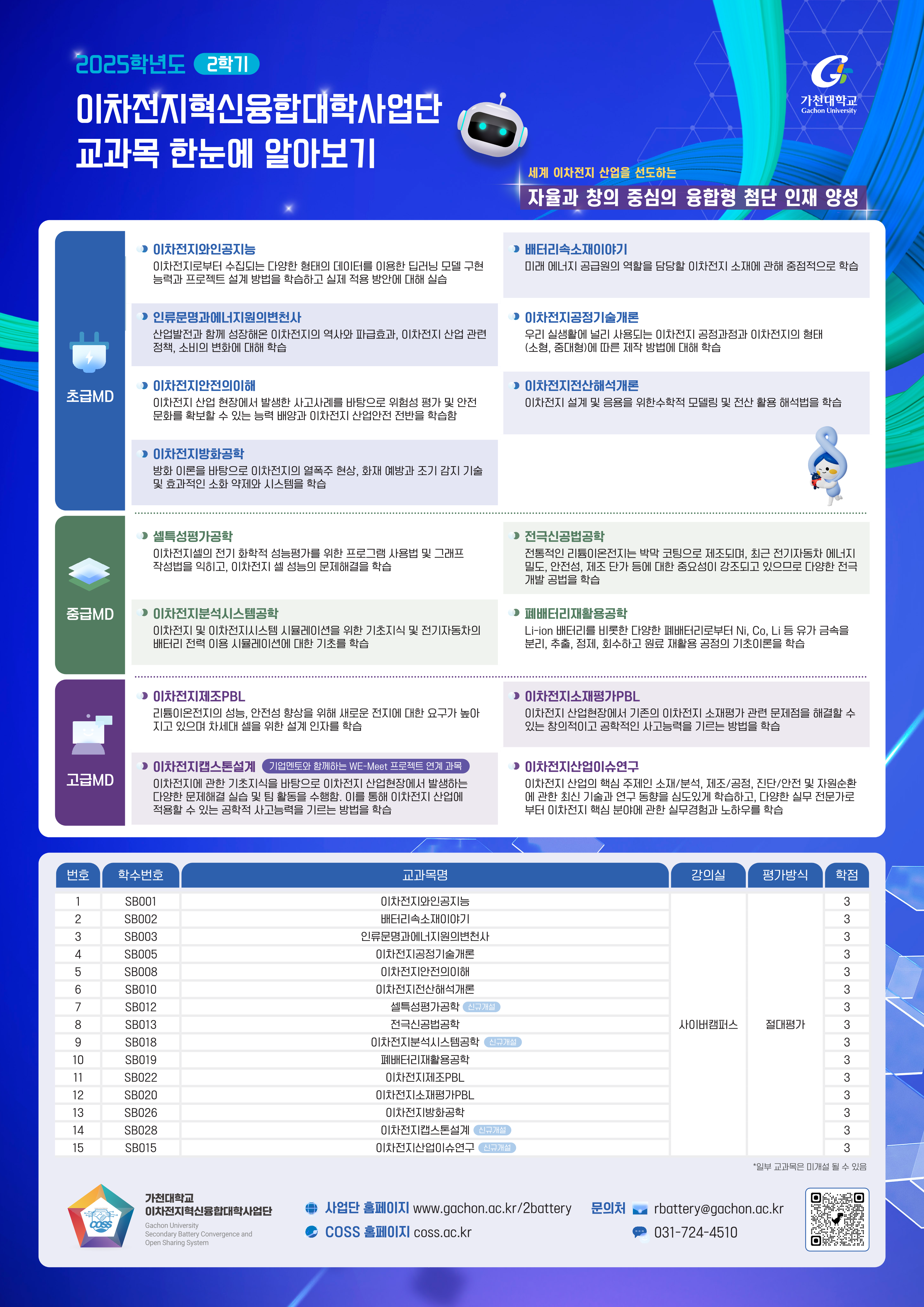 fnctId=bbs,fnctNo=1529 글번호 111438 2025학년도 2학기 교과목 및 교육과정 한눈에 알아보기 수정일 2025.07.14 작성자 이차전지혁신융합대학사업단 조회수 406 등록일 2025.07.14