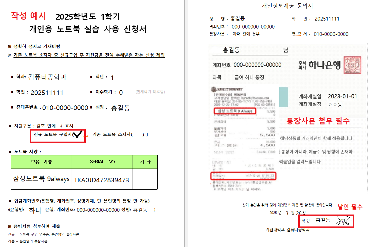- 신규 제출 시 영수증에 노트북 기종 명시되어 있어야 합니다.