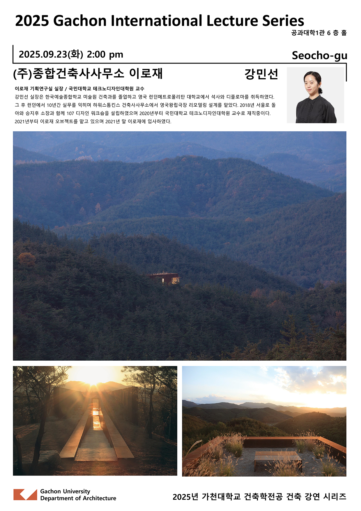 fnctId=bbs,fnctNo=945 글번호 113387 2025 가천대학교 건축학전공 국제 건축 강연 시리즈. 3차 수정일 2025.09.23 작성자 건축학부 조회수 74 등록일 2025.09.23