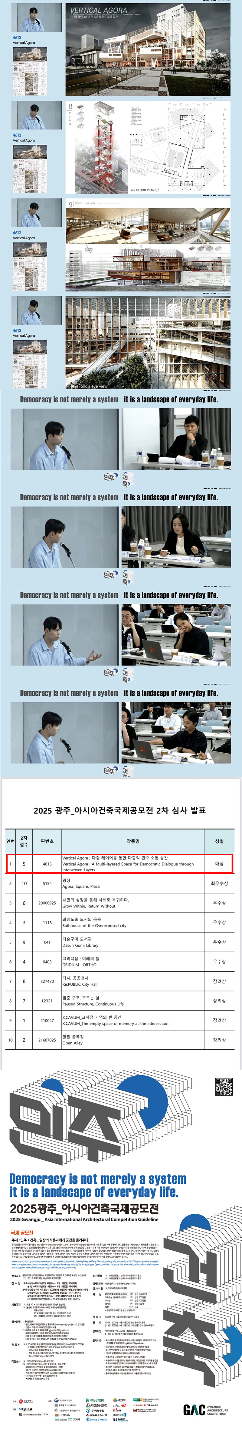 가천대학교 건축학전공 김승현 학생이 2025 광주 아시아건축국제공모전에서 영예의 대상을 수상하였습니다.