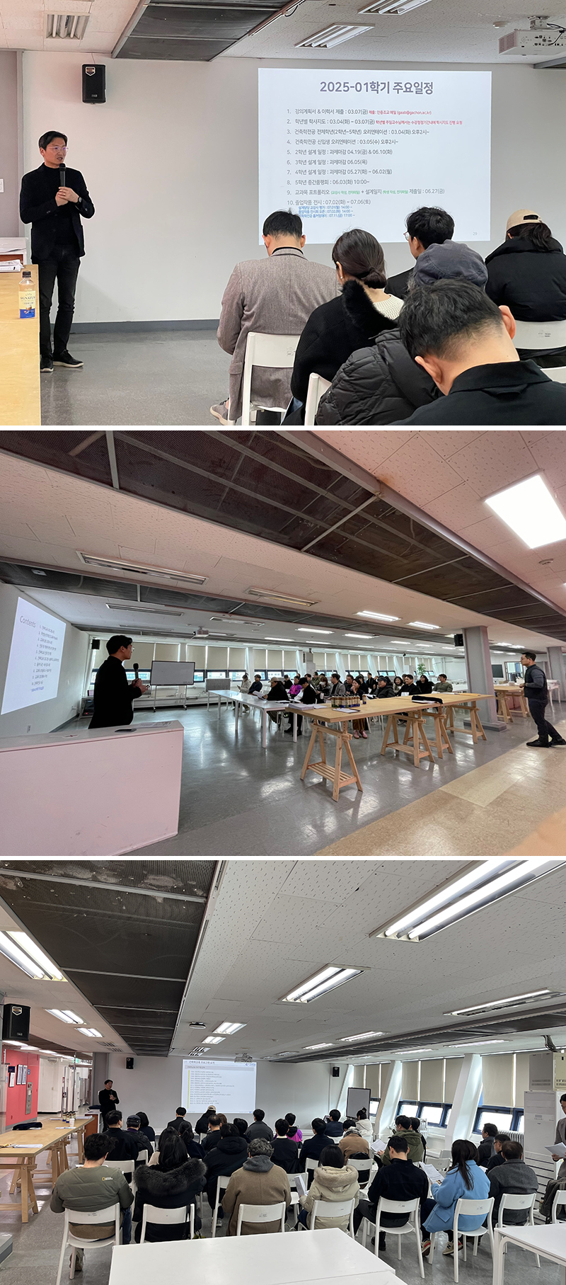2025년 2월 25일. 2025년 신학기 대비 가천대 건축학전공 한국건축학교육인증 현황 및 신임교원 소개 그리고 2025학년도 학사운영에 관한 회의가 진행되었습니다.