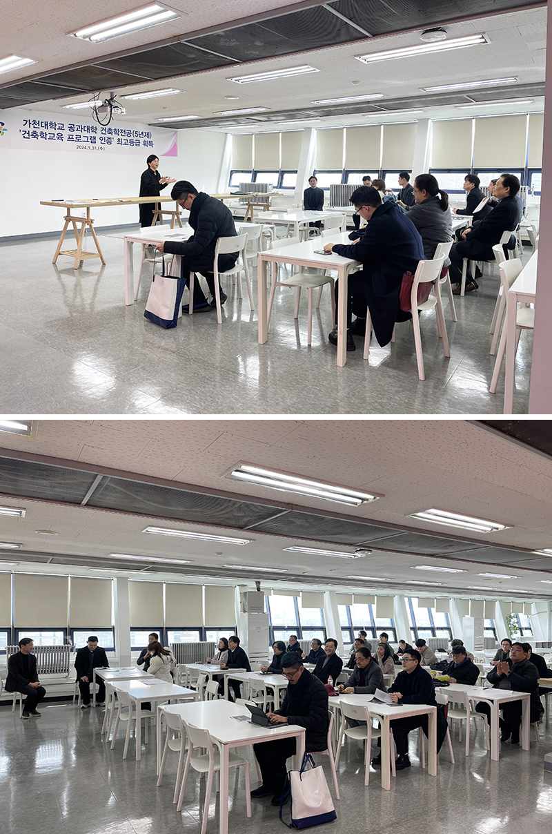 2024년 2월 27일. 가천대 건축학전공 한국건축학교육인증 획득 및 신임교원 소개 그리고 2024학년도 학사운영에 관한 회의가 진행되었습니다.