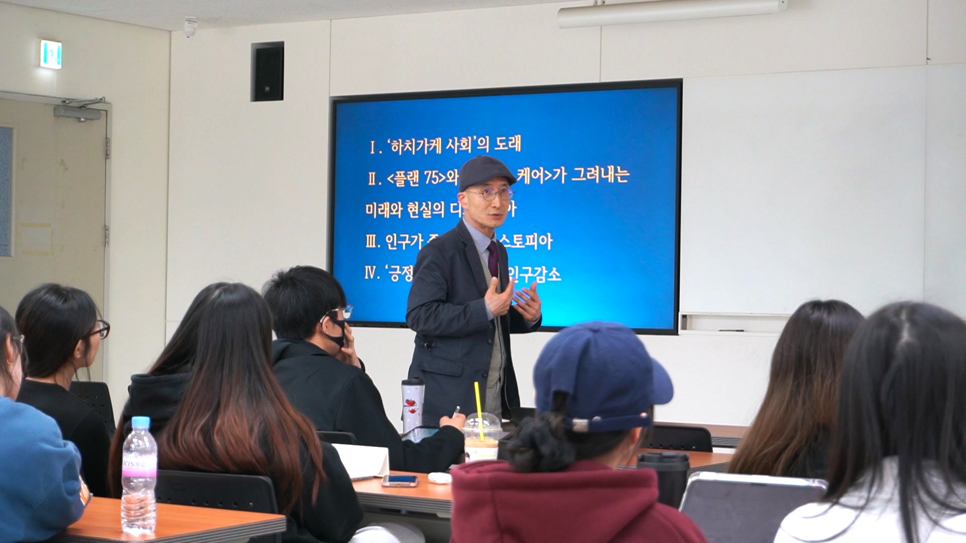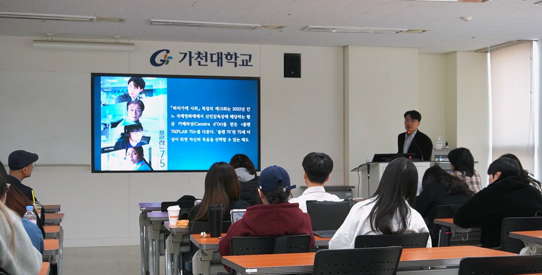 강태웅 광운대학교 교수가 <일본 영상에 드러나는 인구 감소 위기>를 주제로 연 이번 강연은 영화'플랜75'를 비롯한