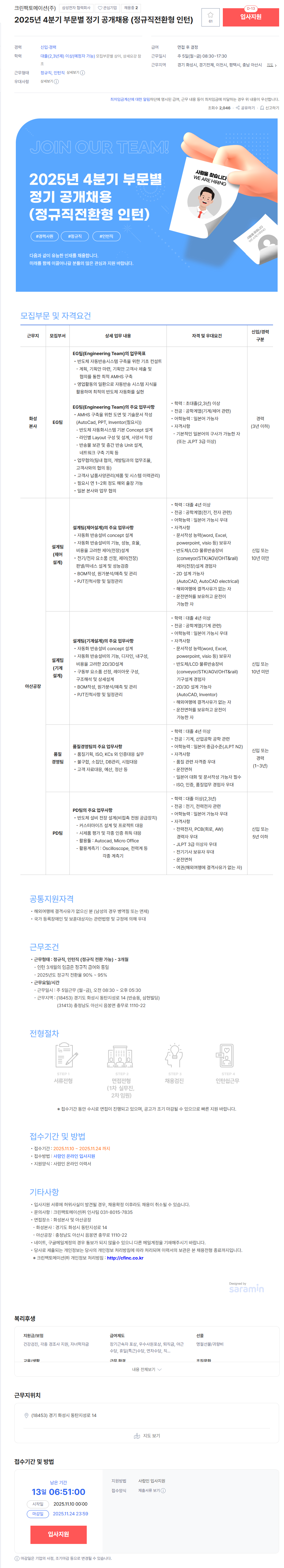 fnctId=bbs,fnctNo=1599 글번호 114841 [채용공고] 크린팩토메이션(주) 2025년 (정규직전환인턴) 수정일 2025.11.11 작성자 반도체특성화대학사업단 조회수 241 등록일 2025.11.11 https://buly.kr/BpG4SCU 채용정보 바로가기