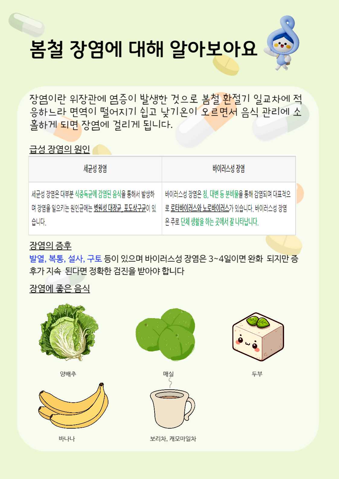 fnctId=bbs,fnctNo=350 글번호 95323 봄철 장염에 대해 알아 보아요 수정일 2024.03.14 조회수 615 등록일 2024.03.14 이전글 상처관리와 흉터예방 202029036 2021-12-22 16:13:23.0 다음글 황사 미세먼지 바로알기 한지현 2024-04-19 10:14:40.0