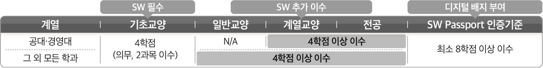 SW Passport(디지털 배지 부여) 계열별 이수 기준
