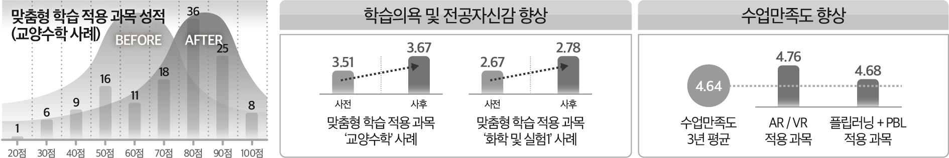 - 3년간 꾸준히 혁신적 교수모델을 운영하였으며, 특히 성과가 우수한 맞춤형 학습을 확산함