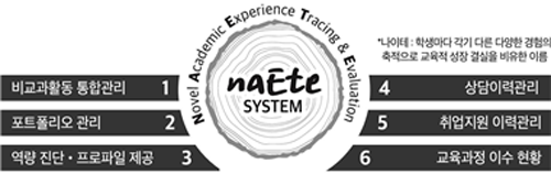 - 학생의 입학부터 졸업까지 모든 교육 경험(비교과활동기록, 포트폴리오, 핵심역량, 취업이력, 상담 등의 데이터)을 기록·관리하는 통합시스템을 구축함