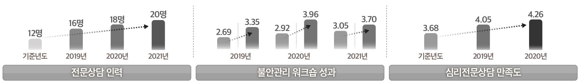 - 상담시설 확충, 상담인력의 양적 확대와 질적 전문성 강화로 상담 인프라를 크게 개선함