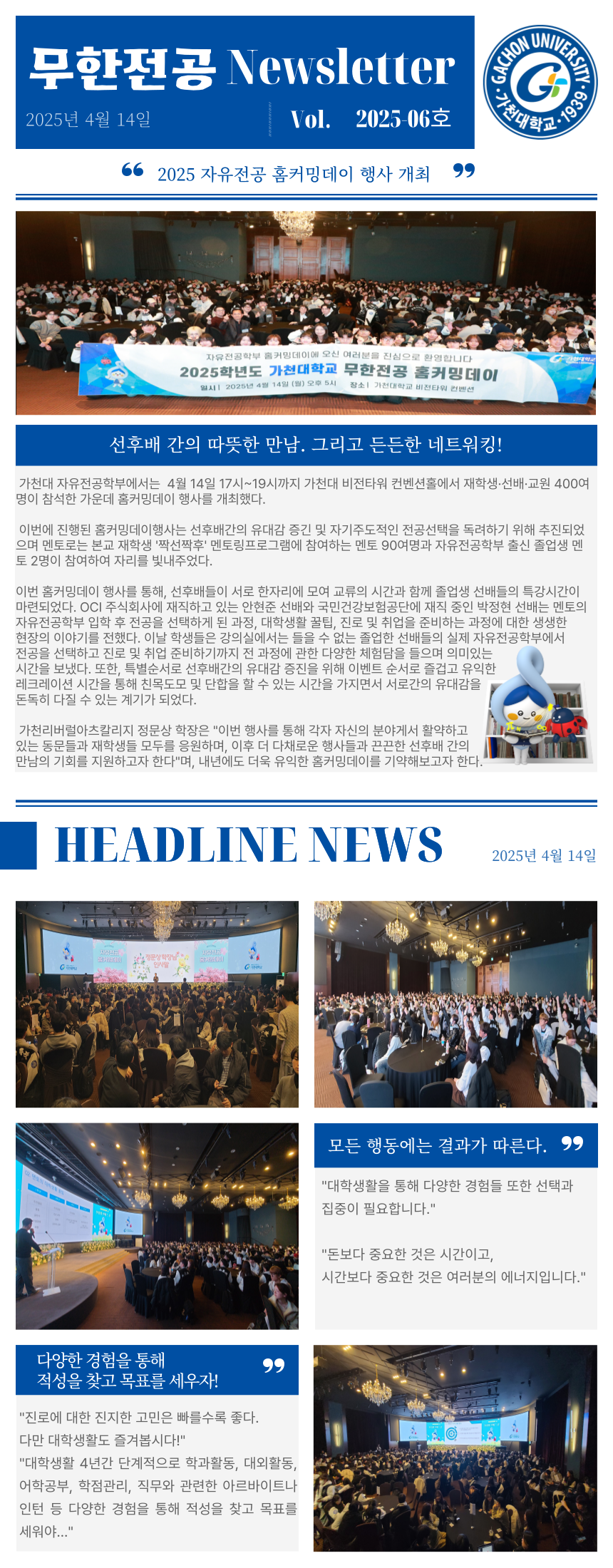 fnctId=bbs,fnctNo=762 글번호 110081 2025 자유전공 홈커밍데이 행사 개최 수정일 2025.05.23 작성자 가천리버럴아츠칼리지(G) 조회수 272 등록일 2025.05.23