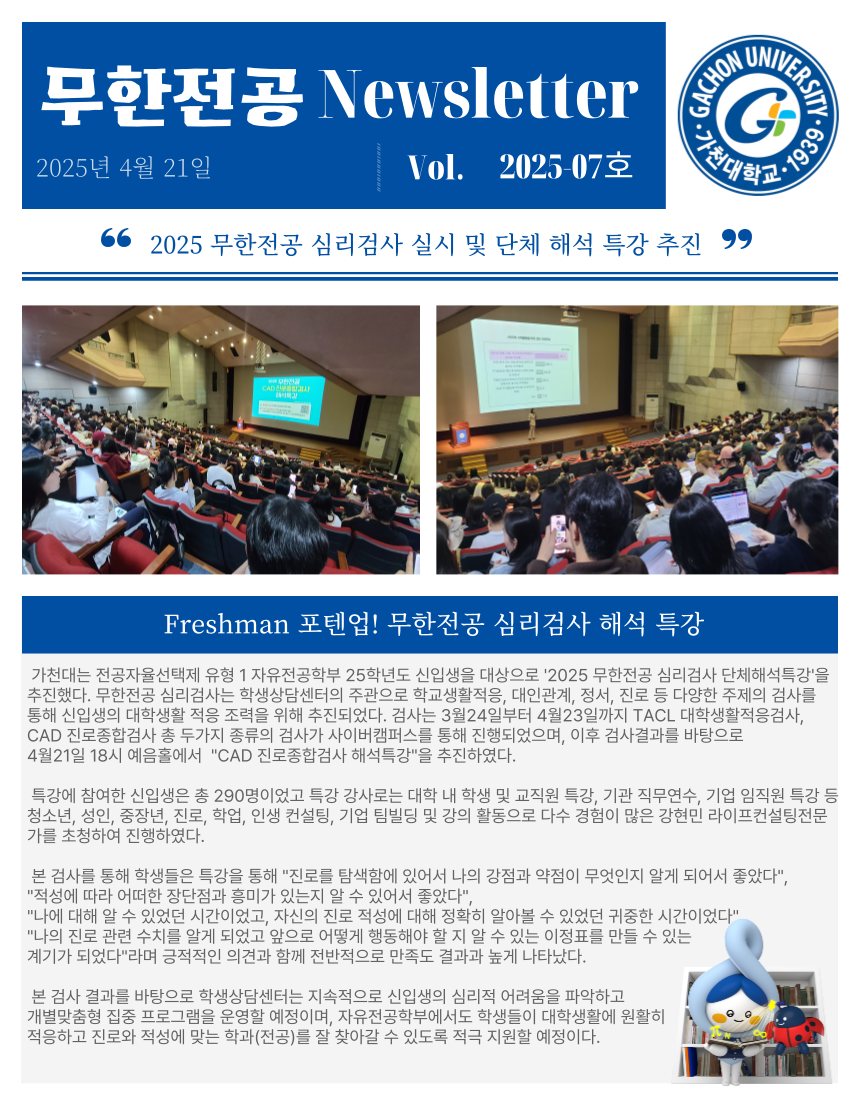 fnctId=bbs,fnctNo=762 글번호 110108 2025 무한전공 심리검사 실시 및 단체 해석 특강 추진 수정일 2025.05.23 작성자 가천리버럴아츠칼리지(G) 조회수 253 등록일 2025.05.23