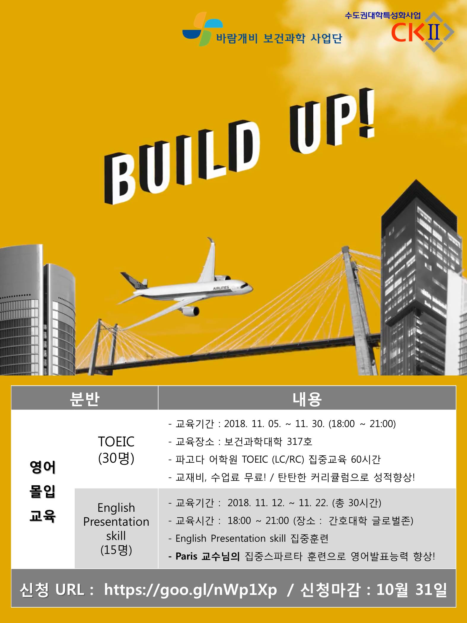 fnctId=bbs,fnctNo=476 글번호 3917 [의과학대학] [특성화] 2018 바람개비 BUILD UP 프로그램 참여자 모집 (진짜마지막) 수정일 작성자 보건과학대학 조회수 1428 등록일 2018.10.11 신청링크 https://goo.gl/nWp1Xp presentation skill class 강의실 추후 안내
