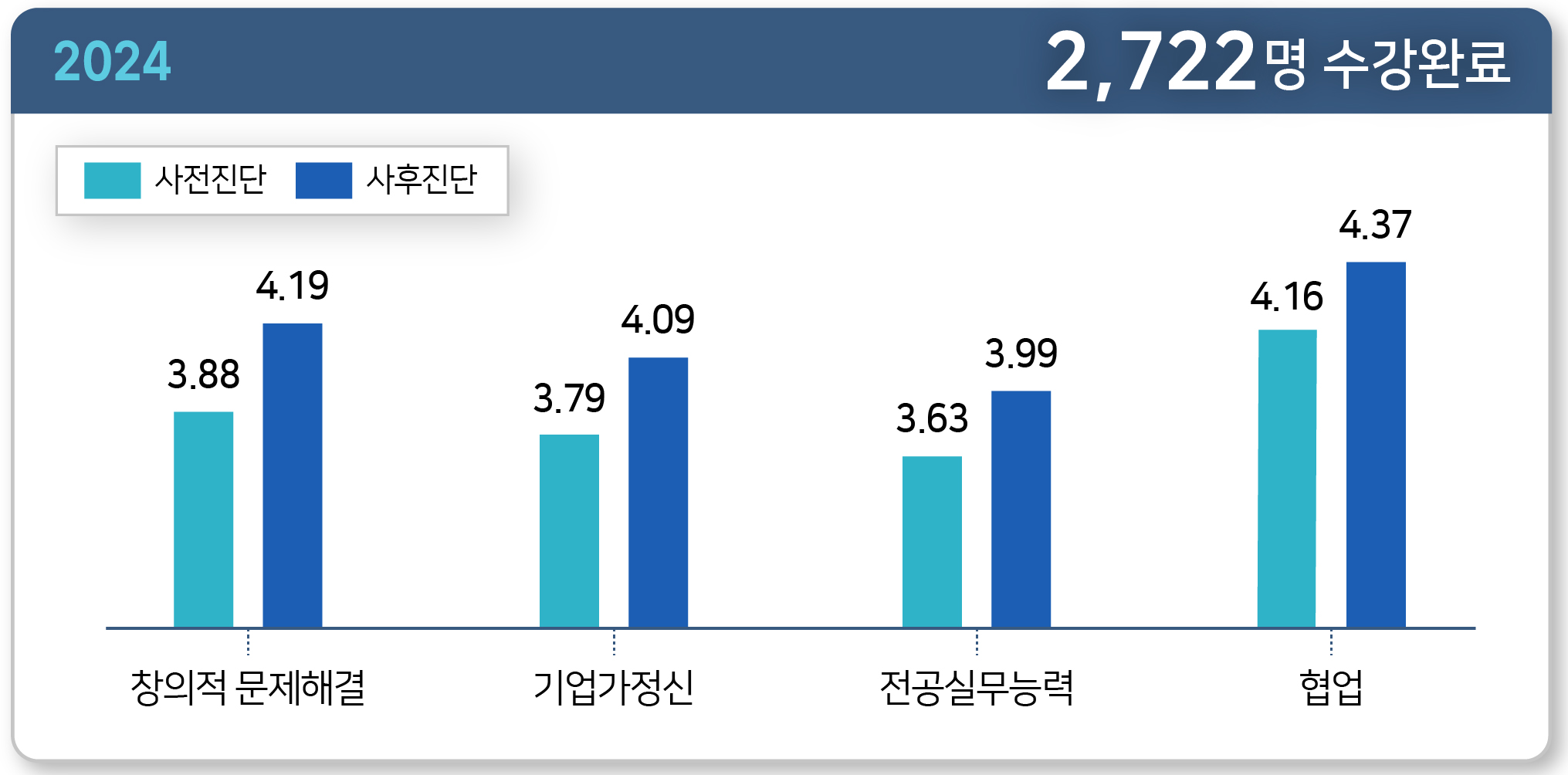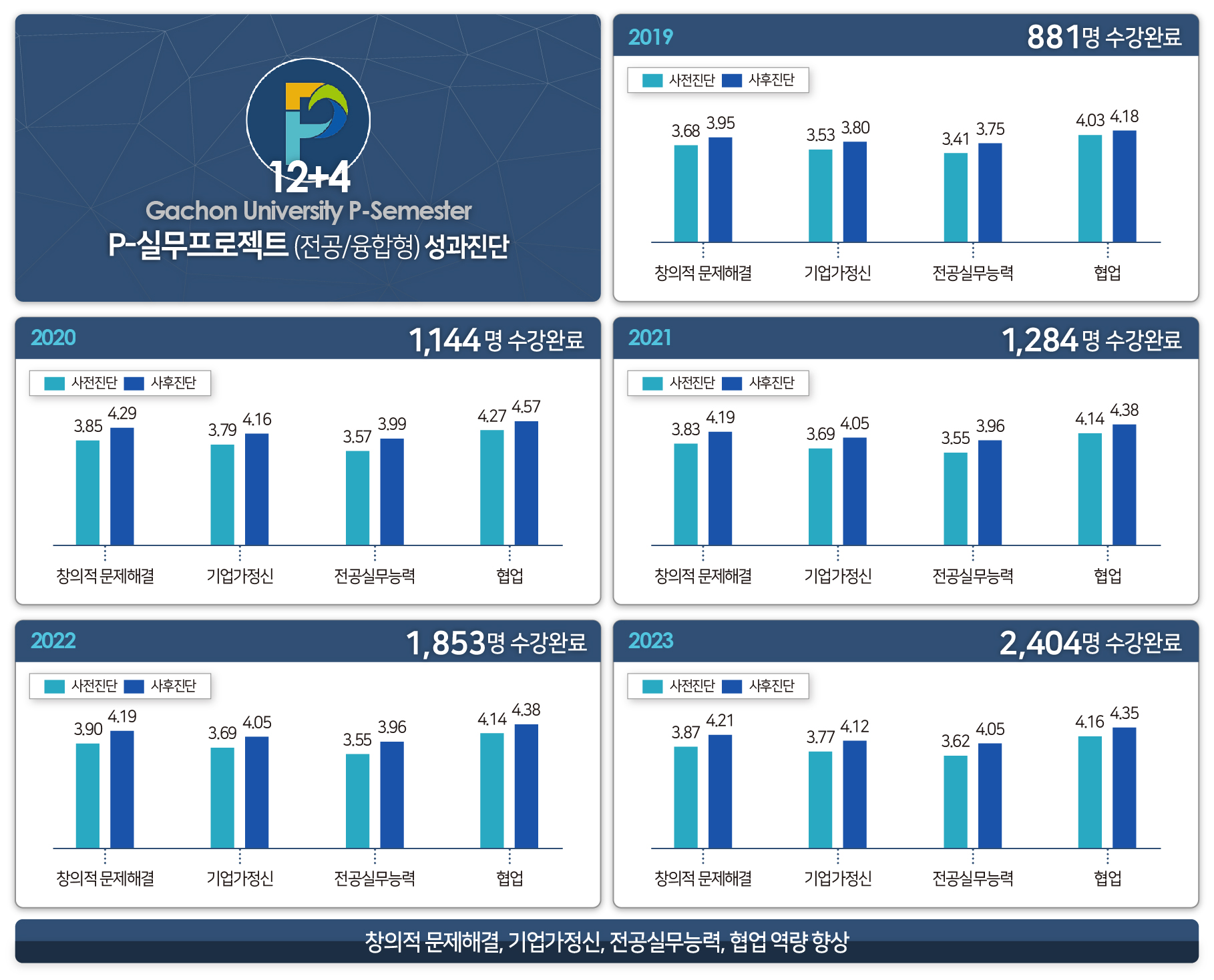 'P-실무프로젝트' 교과 참여 학생의 수강 전·후 학생역량을 분석한 결과 크게 향상된 것으로 나타남