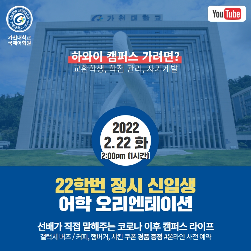 2022 정시 신입생을 위한 유튜브 라이브 어학오리엔테이션