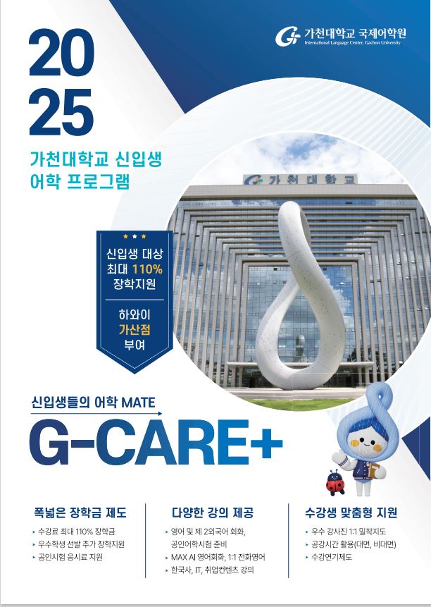 신입생 여러분들이 입학부터 졸업까지 Global Leader로 성장하는데 도움을 줄 수 있도록 개설된 영어 프로그램입니다. G.CARE+과정은 수준별 수업을 진행하며, 정슈수업 외에 여유시간을 활용하여 학습할 수 있습니다.