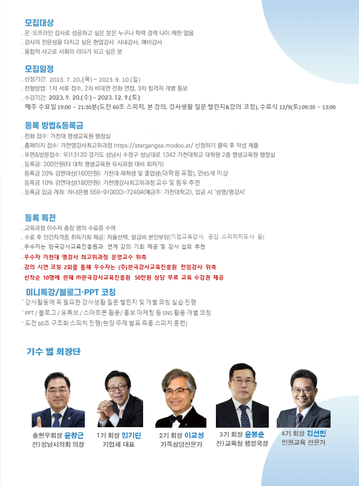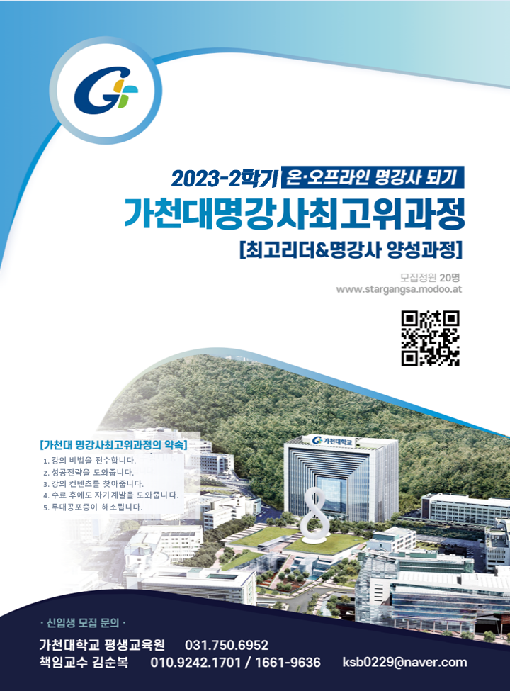 fnctId=bbs,fnctNo=288 글번호 88305 2023-2학기 가천명강사최고위과정 수정일 2023.07.31 작성자 평생교육원(G) 관리자 조회수 875 등록일 2023.07.31