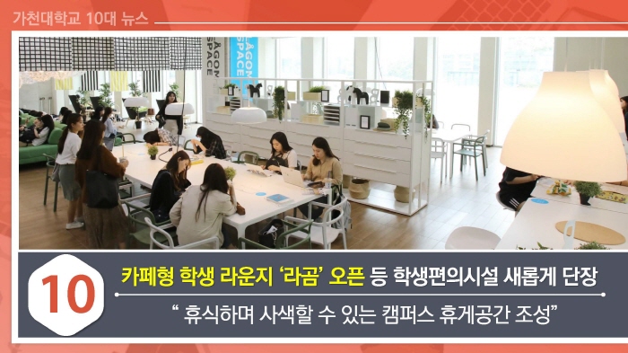 가천대가 학업에 지친 학생들이 잠시 쉬어갈 수 있게 학생라운지 라곰, 중앙도서관 재단장 등을 통해 캠퍼스를 학생 친화적으로 꾸몄다. ‘라곰’은 스웨덴어로 너무 많지도, 적지도 않은 충분함을 뜻한다. 학생들은 라곰에서 자유롭게 소통하며 토론할 수 있고 소파에 앉아 바깥풍경을 보며 휴식을 취할 수도 있다. 팀 과제 등으로 노트북 사용이 많은 학생들을 위해 노트북받침대와 콘센트를 곳곳에 배치했다. 글로벌캠퍼스는 6월, 메디컬캠퍼스는 10월 개장했다. 라곰은 방학과 저녁에도 학생들의 발길이 끊이지 않는 ‘핫플레이스’로 자리 잡았다.