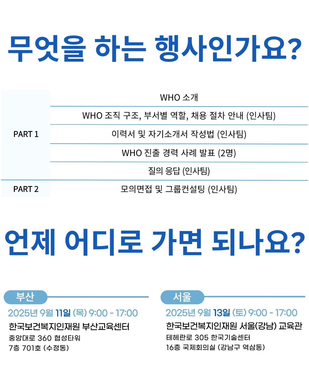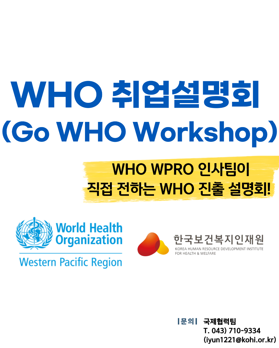 WHO에서 직접 취업 진출관련 설명회를 개최하는 행사가 있어 소개합니다.