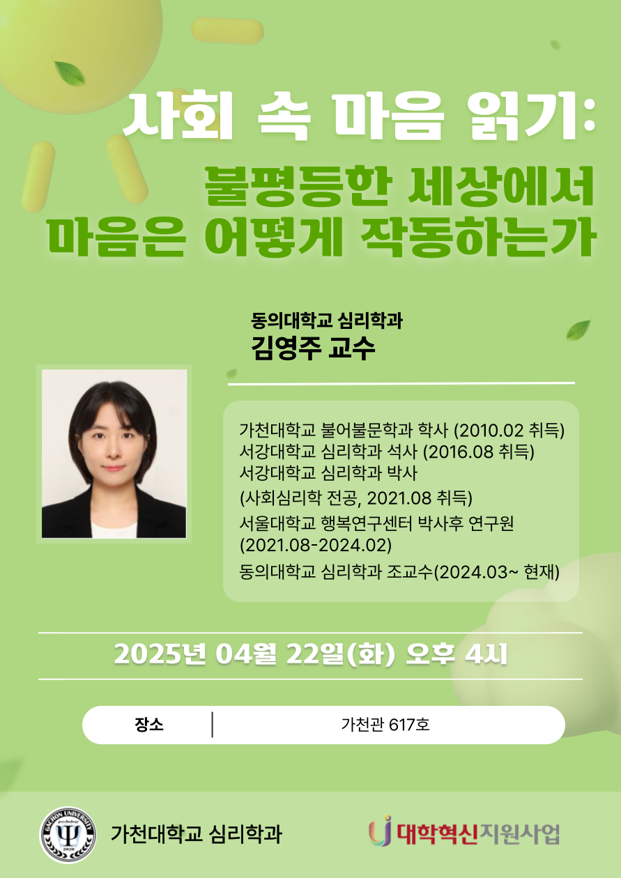 심리학과에서는 2025-1학기 연구지원팀의 지원을 받아 성과교류 학과세미나를 진행하였습니다.