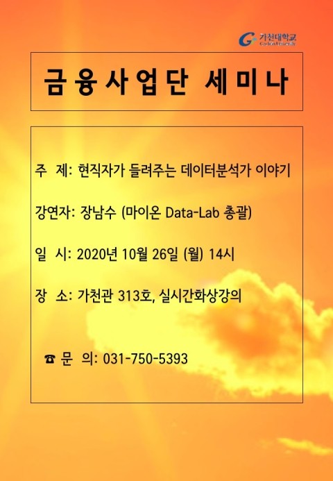 fnctId=bbs,fnctNo=991 글번호 40420 10월 26일 (월) 산학세미나 특강 수정일 2022.05.04 작성자 응용통계학과 조회수 743 등록일 2020.11.02