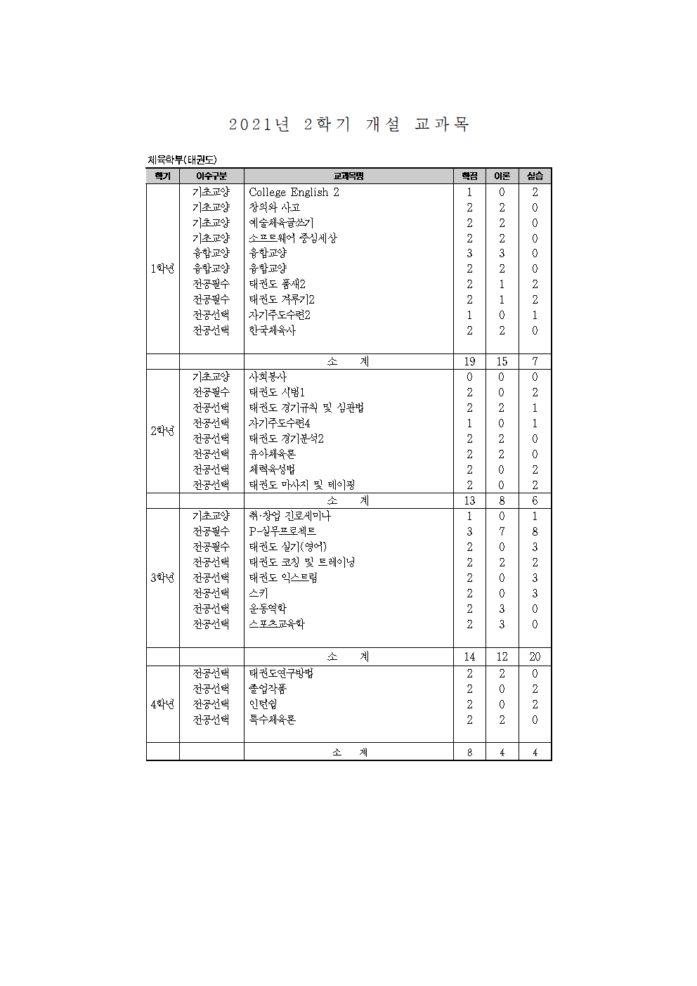 fnctId=bbs,fnctNo=825 글번호 61270 2021-2학기 개설 교과목 안내 수정일 작성자 태권도학과 조회수 753 등록일 2021.06.09 2021-2학기 태권도학과 개설 교과목 입니다. 수강신청에 참고하시길 바랍니다. 첨부파일 2021년-2학기 개설 교과목.hwp 미리보기 2021년-2학기 개설 교과목001.png 미리보기