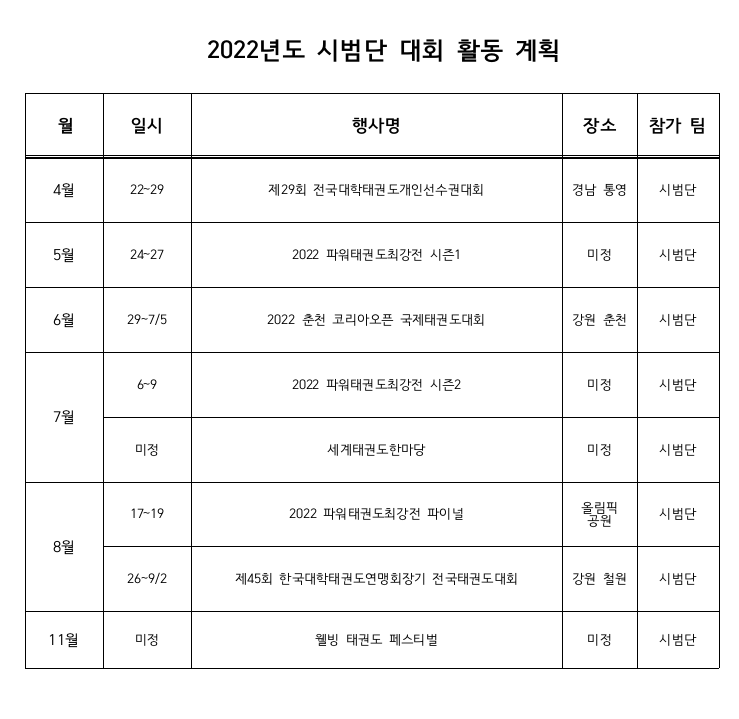 fnctId=bbs,fnctNo=1037 글번호 71697 2022 가천대학교 태권도 시범단 대회 활동 계획 수정일 2022.02.25 작성자 202113012 조회수 564 등록일 2022.02.25