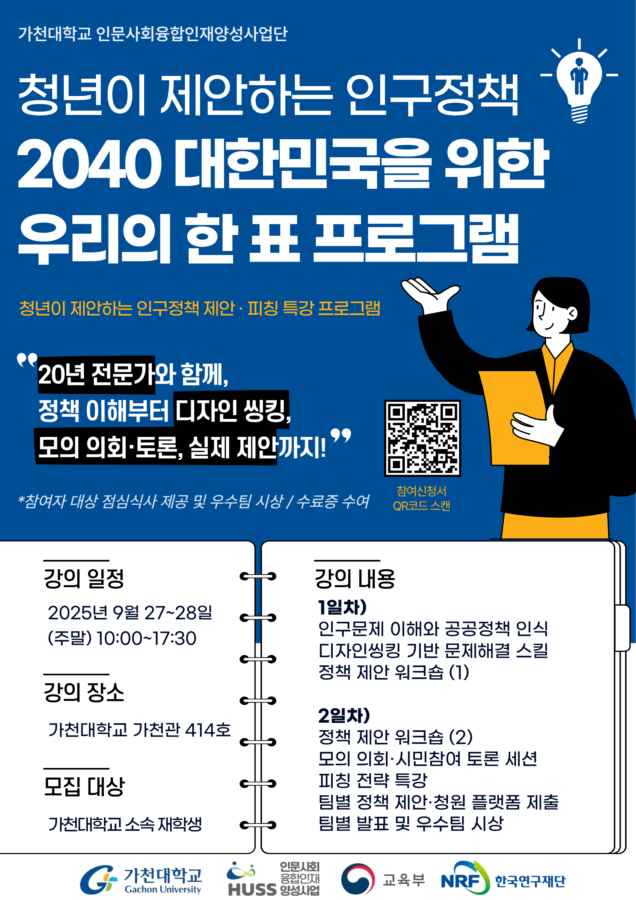 [대외활동안내] [인문사회융합인재양성사업단] 청년이 제안하는 인구정책 [2040 대한민국을 위한 우리의 한 표] 프로그램 안내