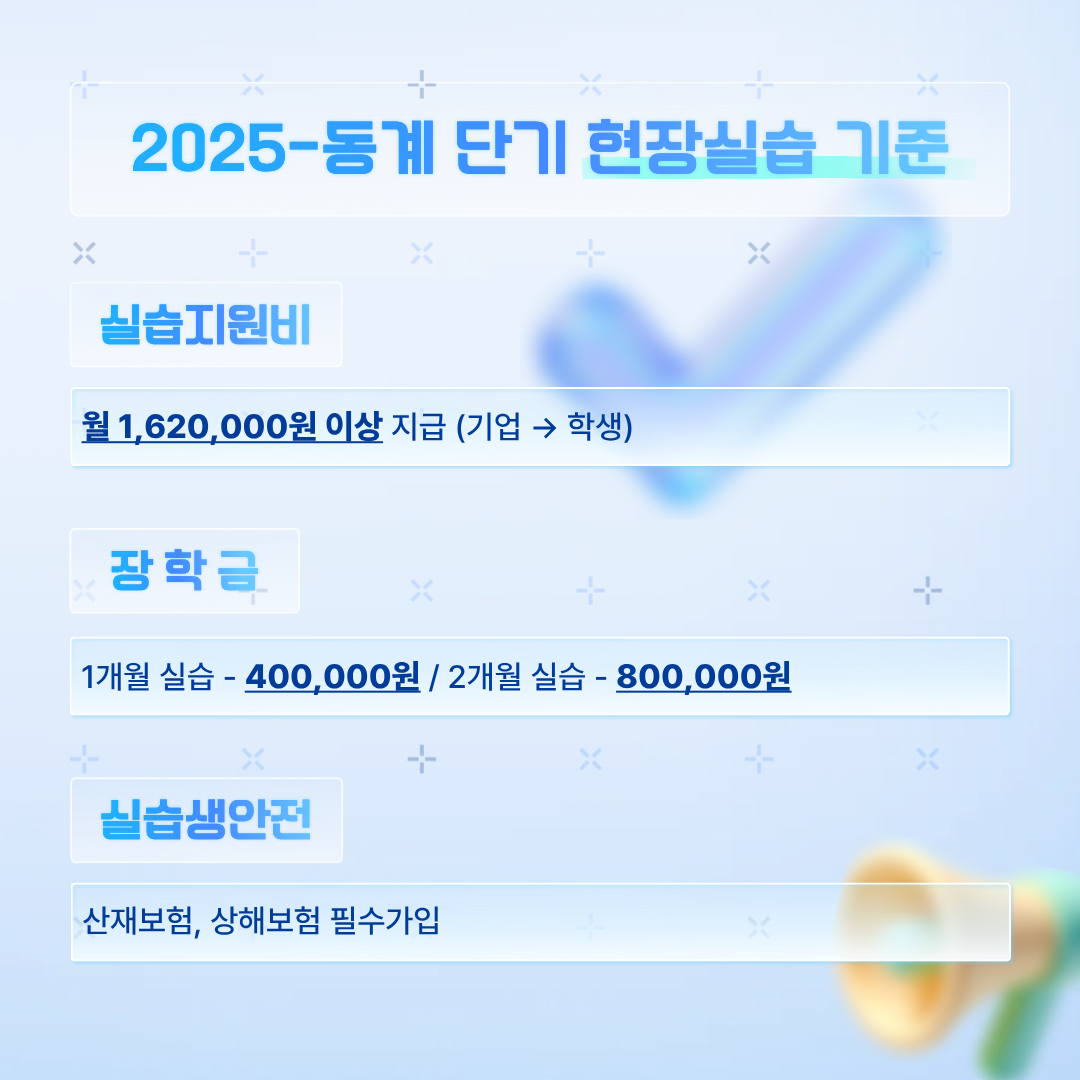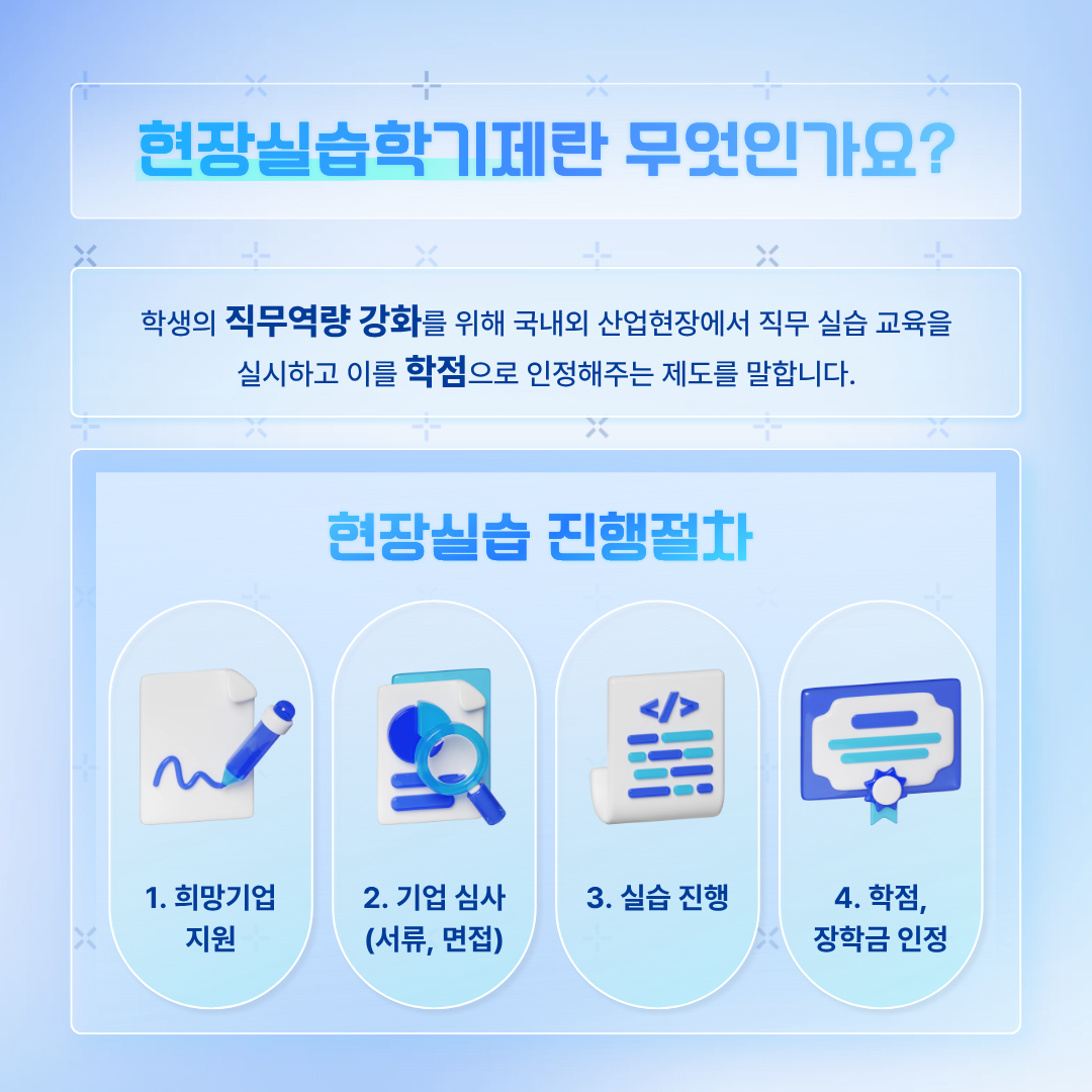 fnctId=bbs,fnctNo=813 글번호 113732 [학사안내] 2025-동계 단기 현장실습학기제(현장실습) 시행 안내 수정일 2025.10.13 작성자 관광경영학과 조회수 11 등록일 2025.10.13 첨부파일 (붙임1)2025-동계 단기 현장실습 시행 안내.pdf 미리보기 (붙임2)2025학년도 현장실습학기제 협약서 양식(학과).hwp 미리보기