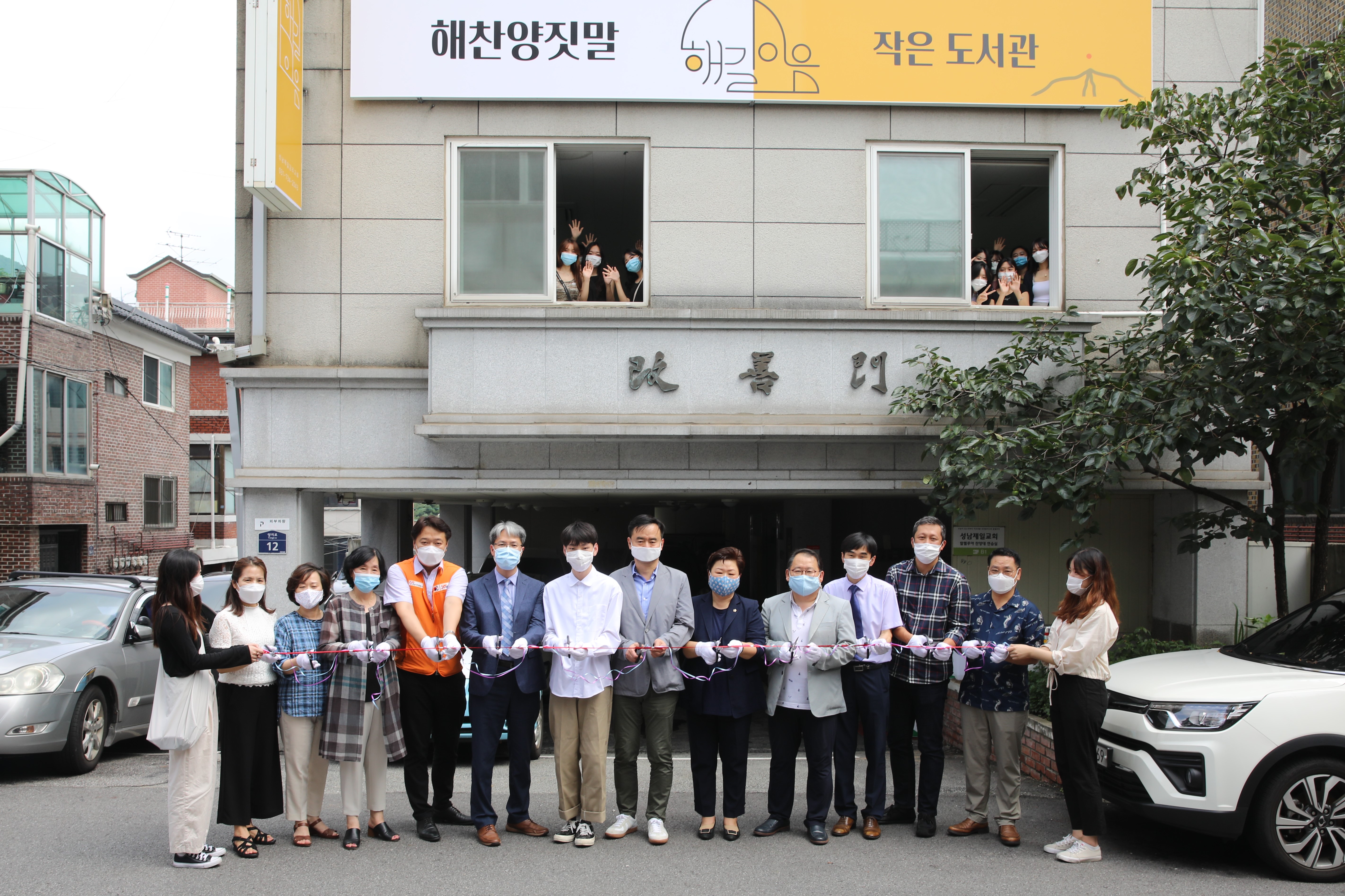 리모델링 개관식에서 관계자들과 기념사진을 촬영하고 있다.